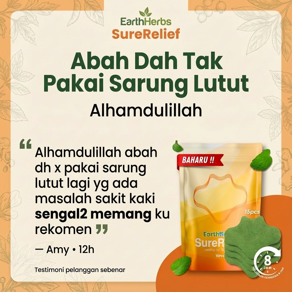 “Alhamdulillah abah dah tak pakai sarung lutut lagi selepas amalkan SureRelief ni..”